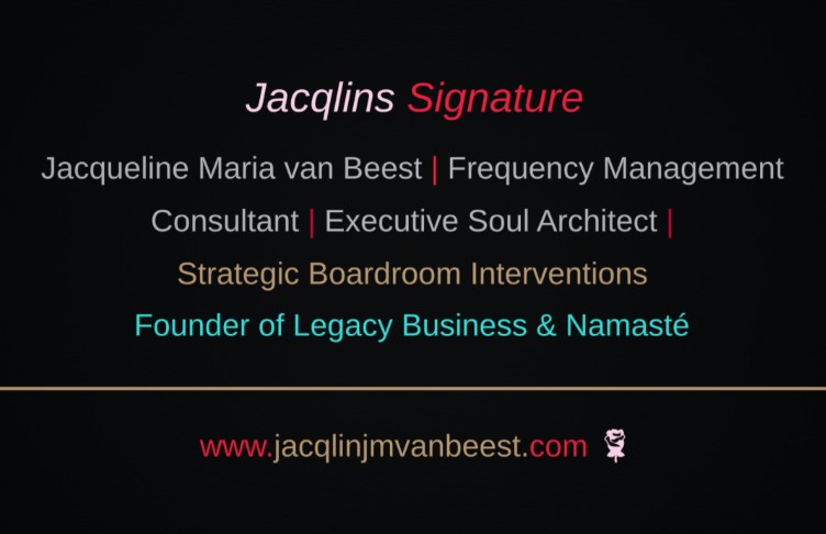 Frequency Management Consultant | Executive Soul Architect | Strategic Boardroom Interventions | Founder of Business Legacy & Namasté